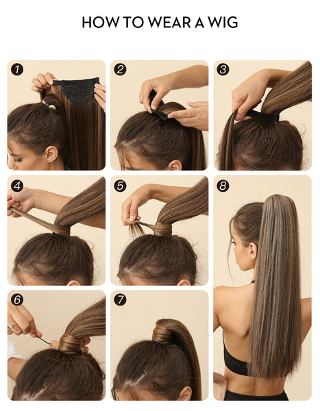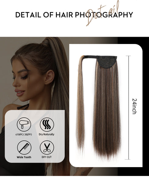 24 inches Long Straight Synthetic Hair Extension Ponytail Extensions Heat Resistant Hair Brown Wigs for Women